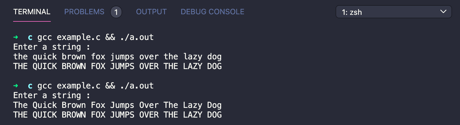Method 1: C program to convert a string to uppercase using a function: