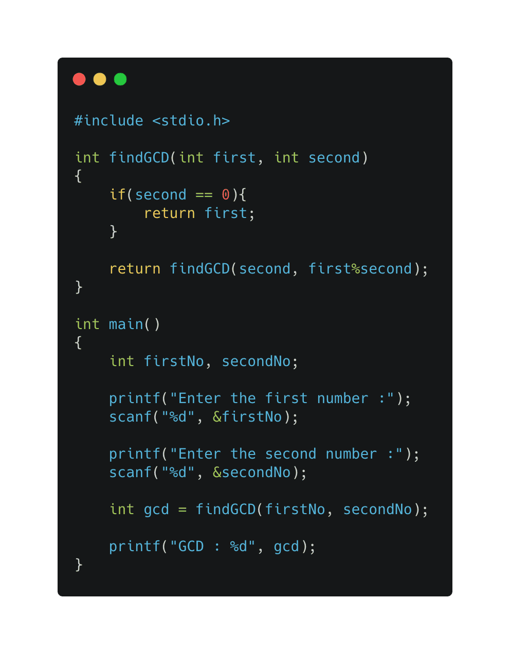 int findGCD(int first, int second)