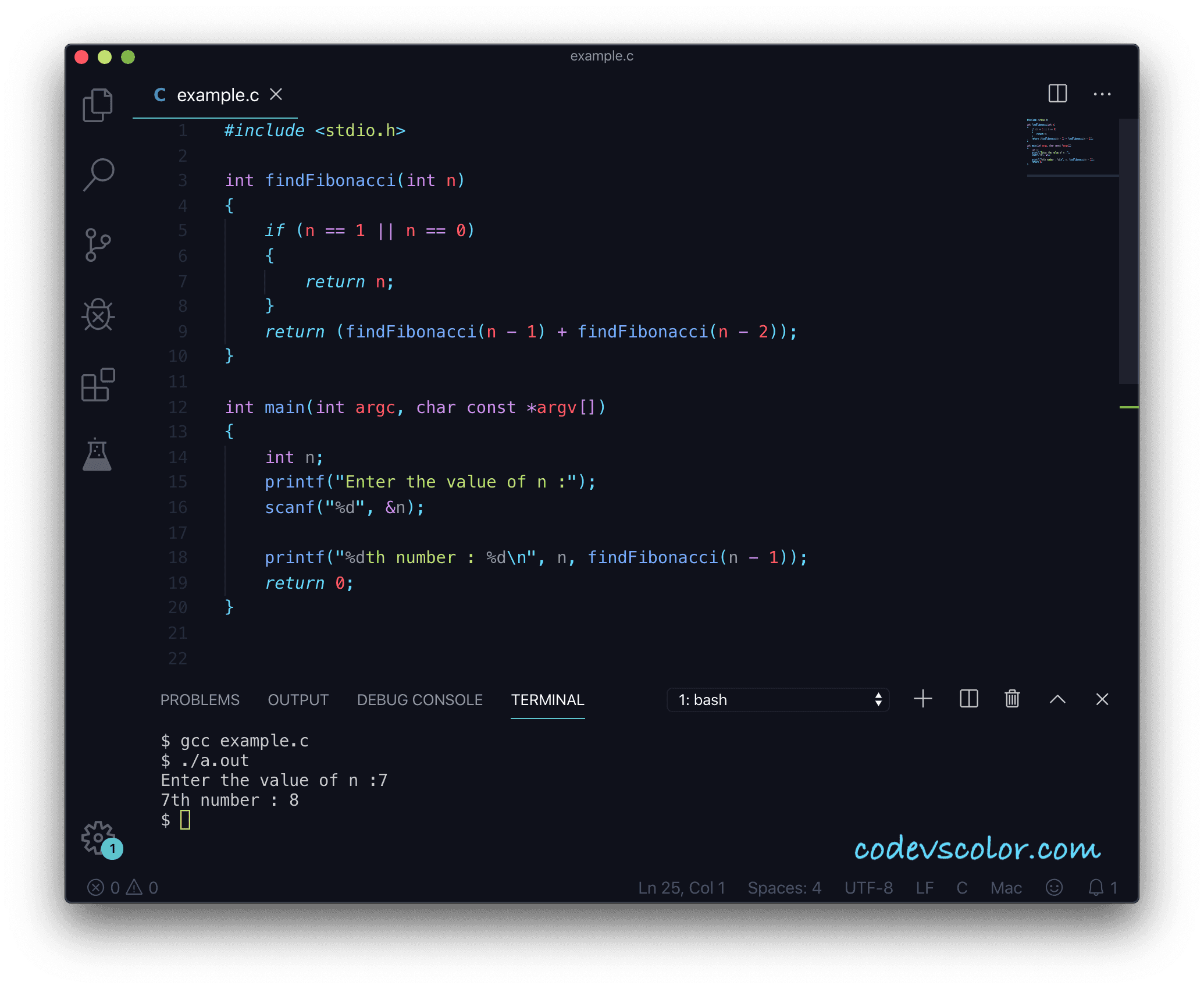 In this C programming tutorial, we will learn how to find the nth Fibonacci number. The program will take the value of n as an input from the user and it will print out the result to the user. We will find it using a recursive function.