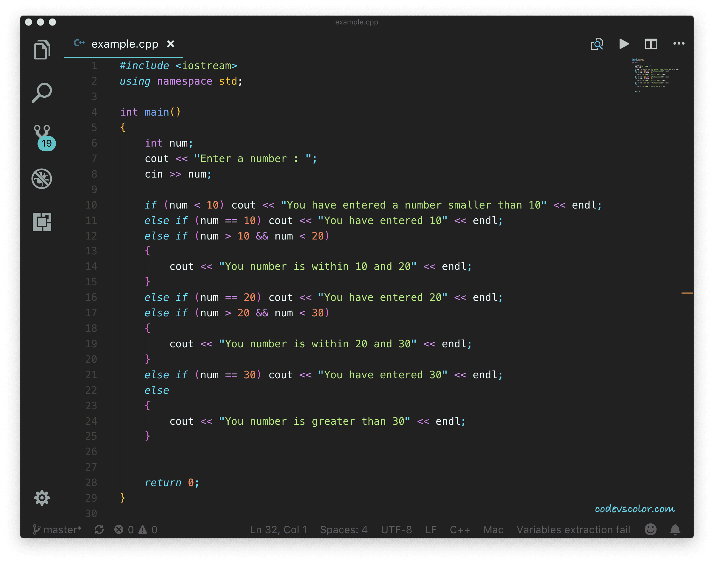 else if (num == 20) cout << "You have entered 20" << endl; else if (num > 20 && num < 30)