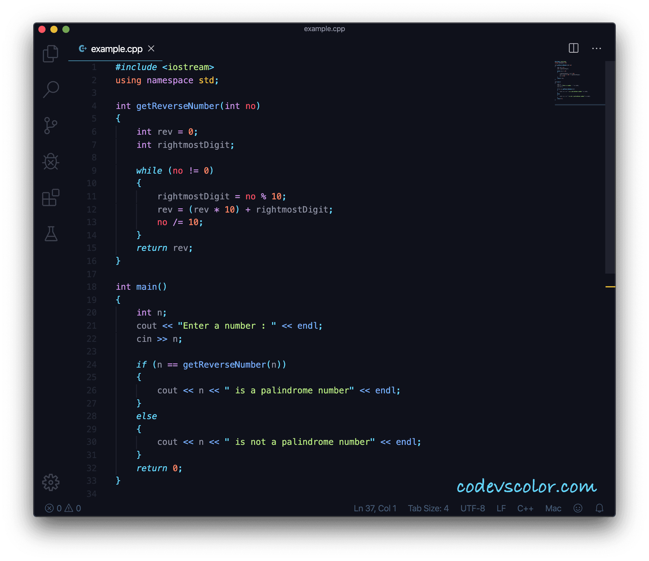 Palindrome number check in C++ :