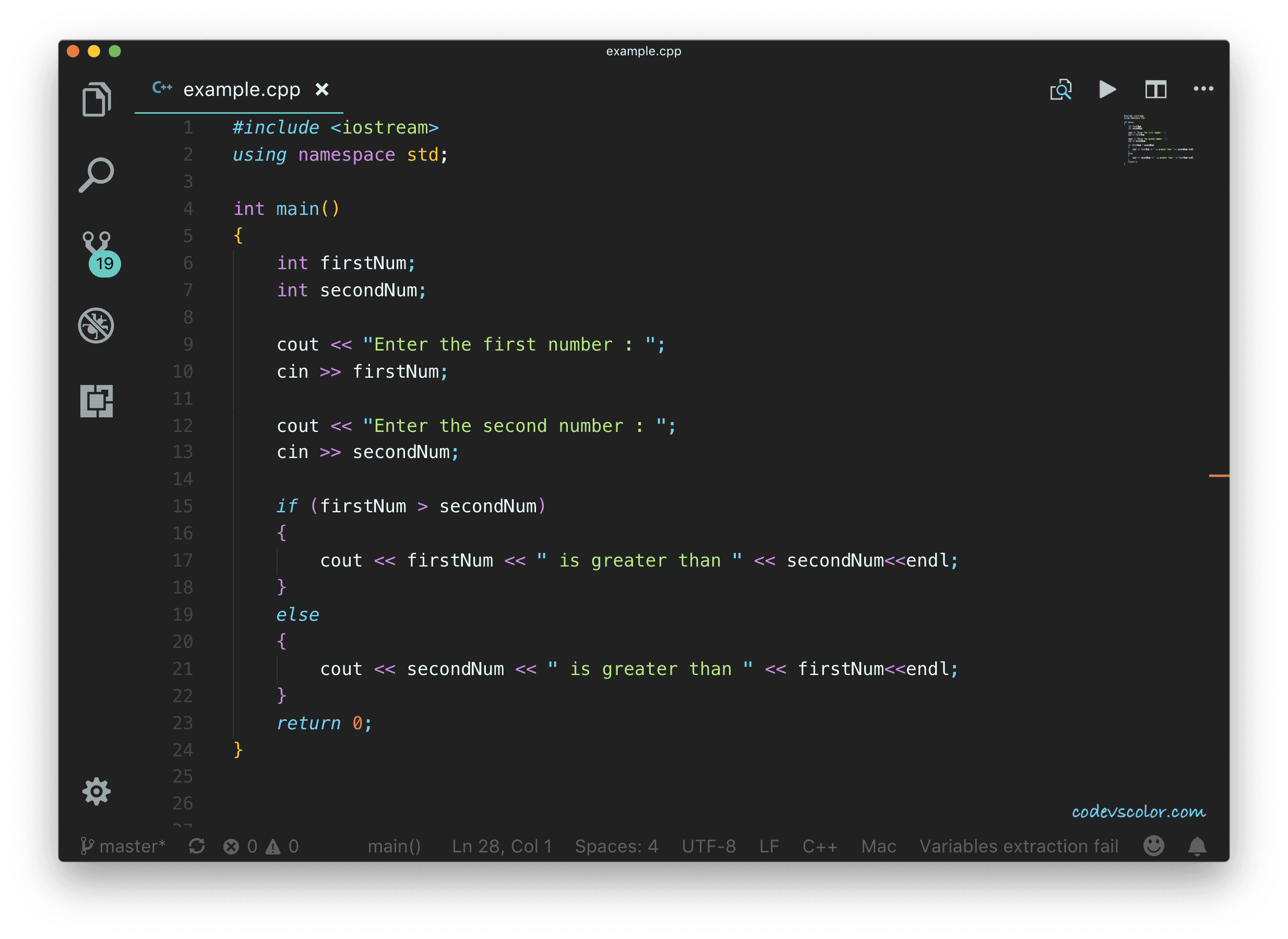 With this program, you will learn how to read user inputs in C++, how to print a message to the user, how to store values in variables and how to use if-else condition.