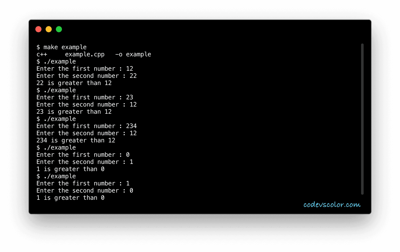 In this CPP tutorial, we will learn how to find the largest of two numbers programmatically. The program will ask the user to enter the numbers one by one.