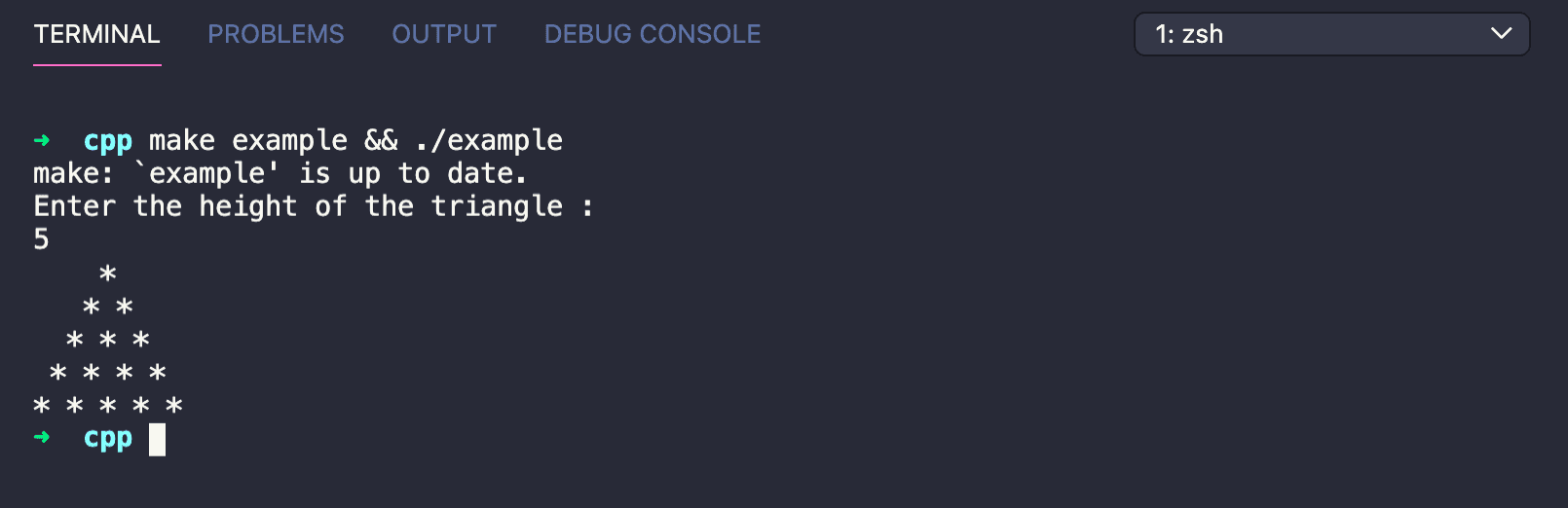 cout << "Enter the height of the triangle : " << endl;