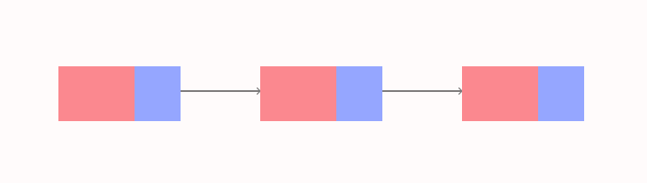 Each rectangle is a node. The red part is the data and blue part is a pointer that **holds the address of the next node.