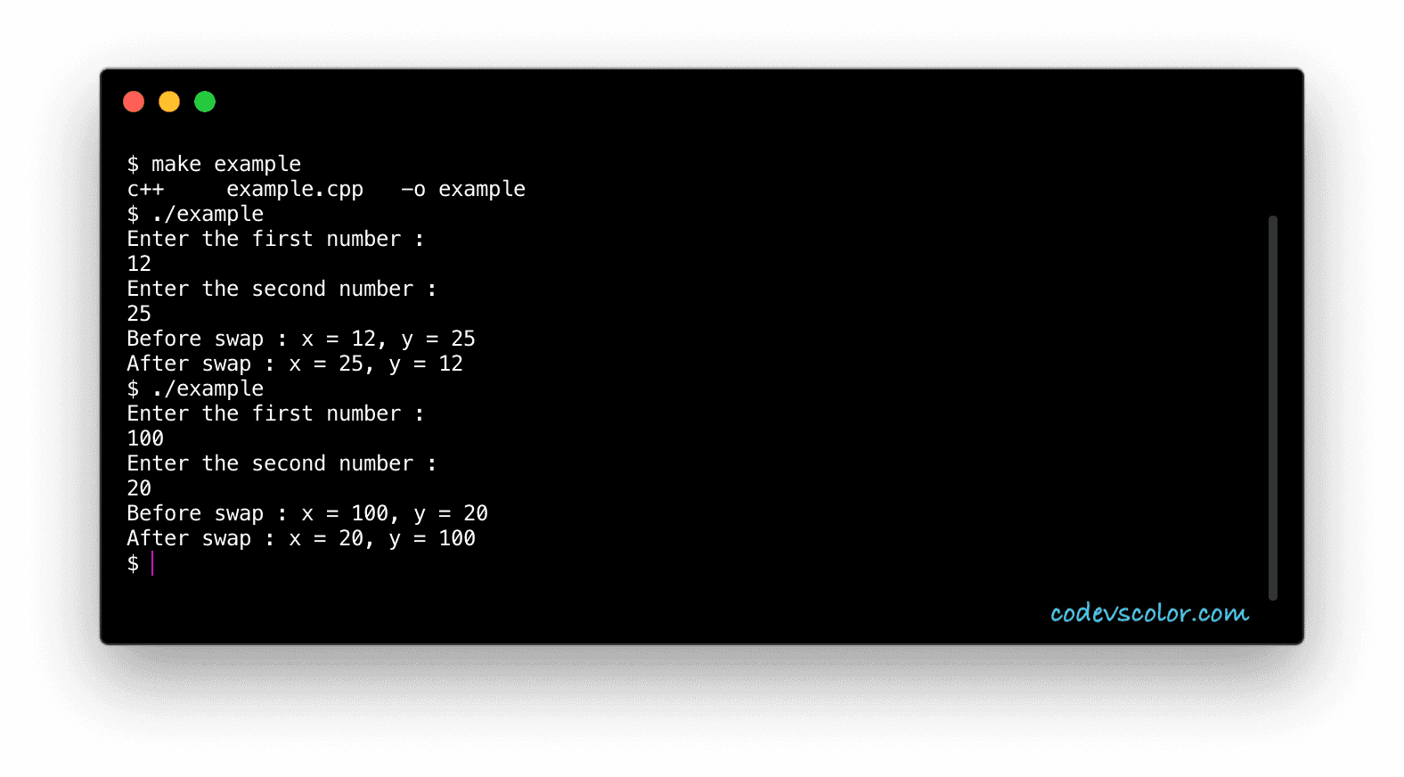 After swap : x = 25, y = 12