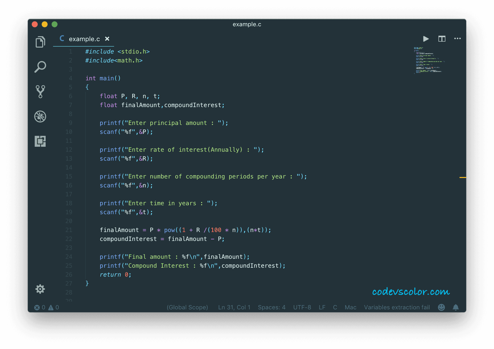 printf("Compound Interest : %f\n",compoundInterest);