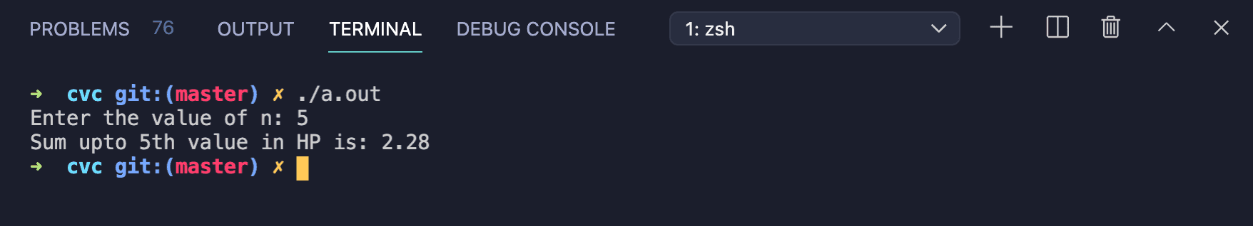Let’s try to find the sum of first n numbers in a harmonic progression HP by using a loop. We will write one for loop. This program will read the value of n as input from the user and calculate the harmonic progression value.
