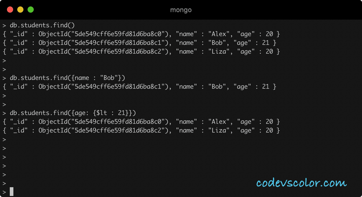 In this post, we have learned the basic find() operations in MongoDB. find() is a powerful method and it is highly customizable. You can follow the official manual to learn more about it.