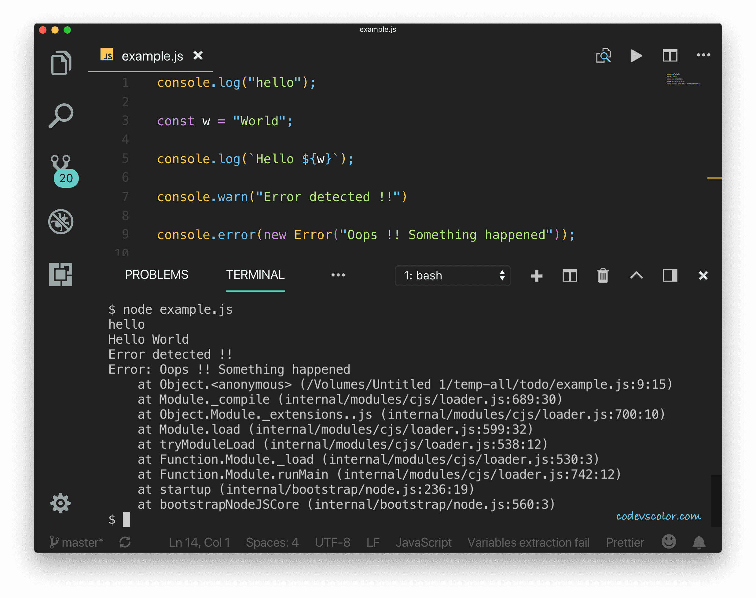Note that console module provides a lot of different methods to log errors, but we are using only debug, warn and error logs in this article.